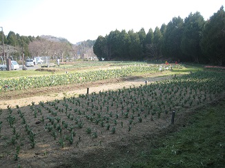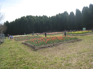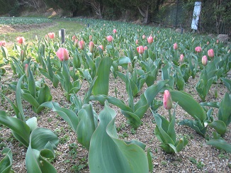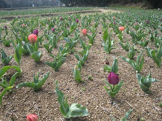 穏やかな天気に恵まれ、チューリップの背丈も成長してきました。