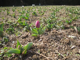 令和8年2月27日のチューリップ園 暖かい日差しを浴びてすくすくと育っています!!